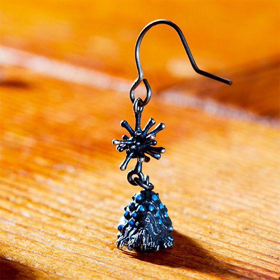 王蟲のアクセサリーと聞いたときはギョッとしましたが、真鍮素材の細かな造形が織りなす世界観は決してキワモノではありません。男女とわずボーダレスなデザインで、すっとコーディネートに馴染んでくれそうです。